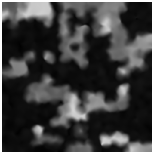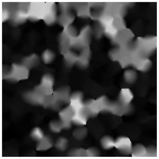 As we increase the point count, the weighted average will account for more and more height points which causes it to get blurrier and blurrier. In order to have more points per region while maintaining a good level of sharpness, the implied radius for height points should decrease as more are added. Here’s the same 6 points per region, but with a radius of .75 Region Size: