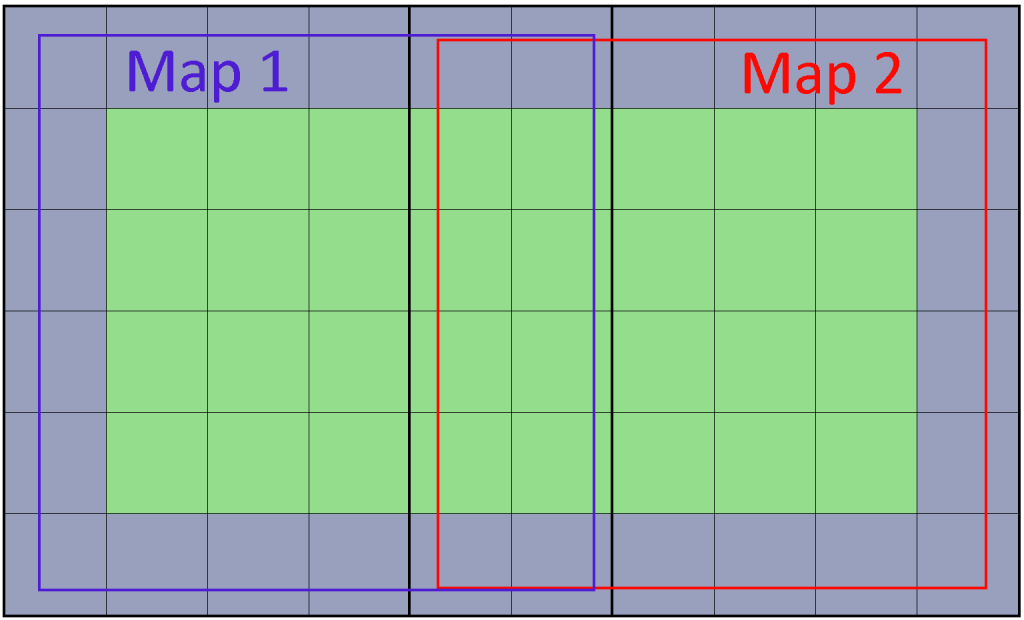 When two maps are combined, the padding area is discarded so that both usable areas are adjacent.