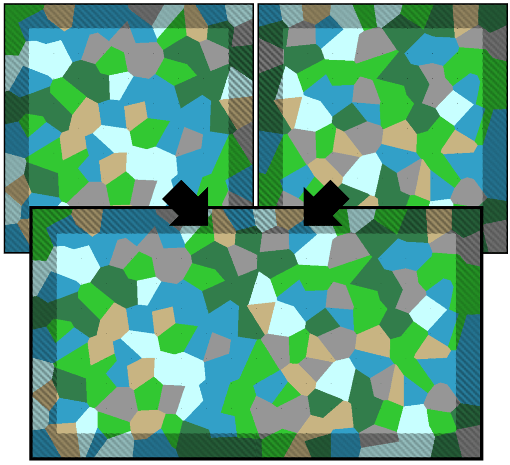 Generating infinite terrain poses a unique problem in procedural generation since there are no size constraints on what we are generating. With finite generation we can simply create the finite area, generate everything right away, and call it a day. With infinite terrain we obviously cant generate “everything”, so we have to continuously generate a map. To do this we generate finite areas of the map which can be “stitched” together in order to make a practically infinite map. However, one of the biggest challenges with this is having seamless borders between neighboring areas.