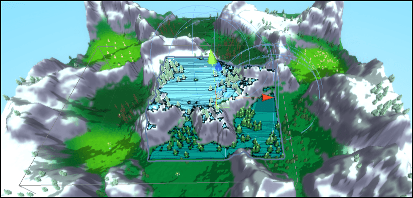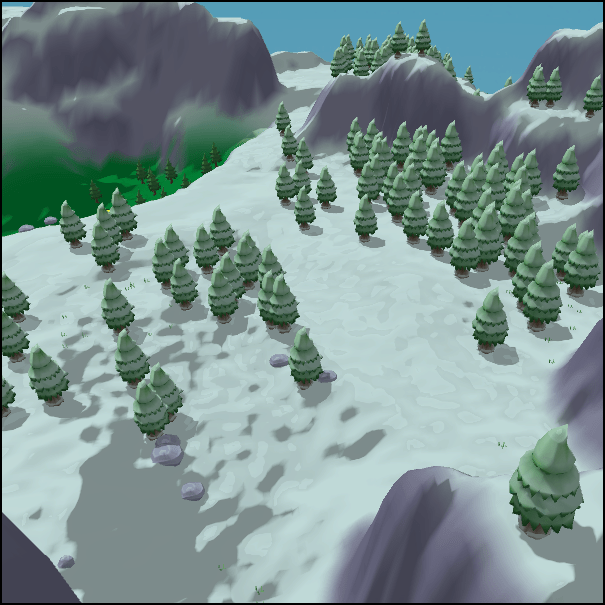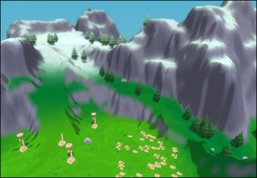 Up until now, I’ve glossed over the actual RPG design present in the level creation. With everything necessary to add a variety of biomes, control heights and object placement, it is easy to get a simple difficulty progression in the world. There are 3 enemy difficulties present in our game, easy, medium and hard. This means we also have 3 difficulties of enemy spawners, so when placing these objects, I look at which biome its being placed in and select the appropriate one. I also decided to correlate the elevation to the difficulty so the high up snowy regions is the hardest area.